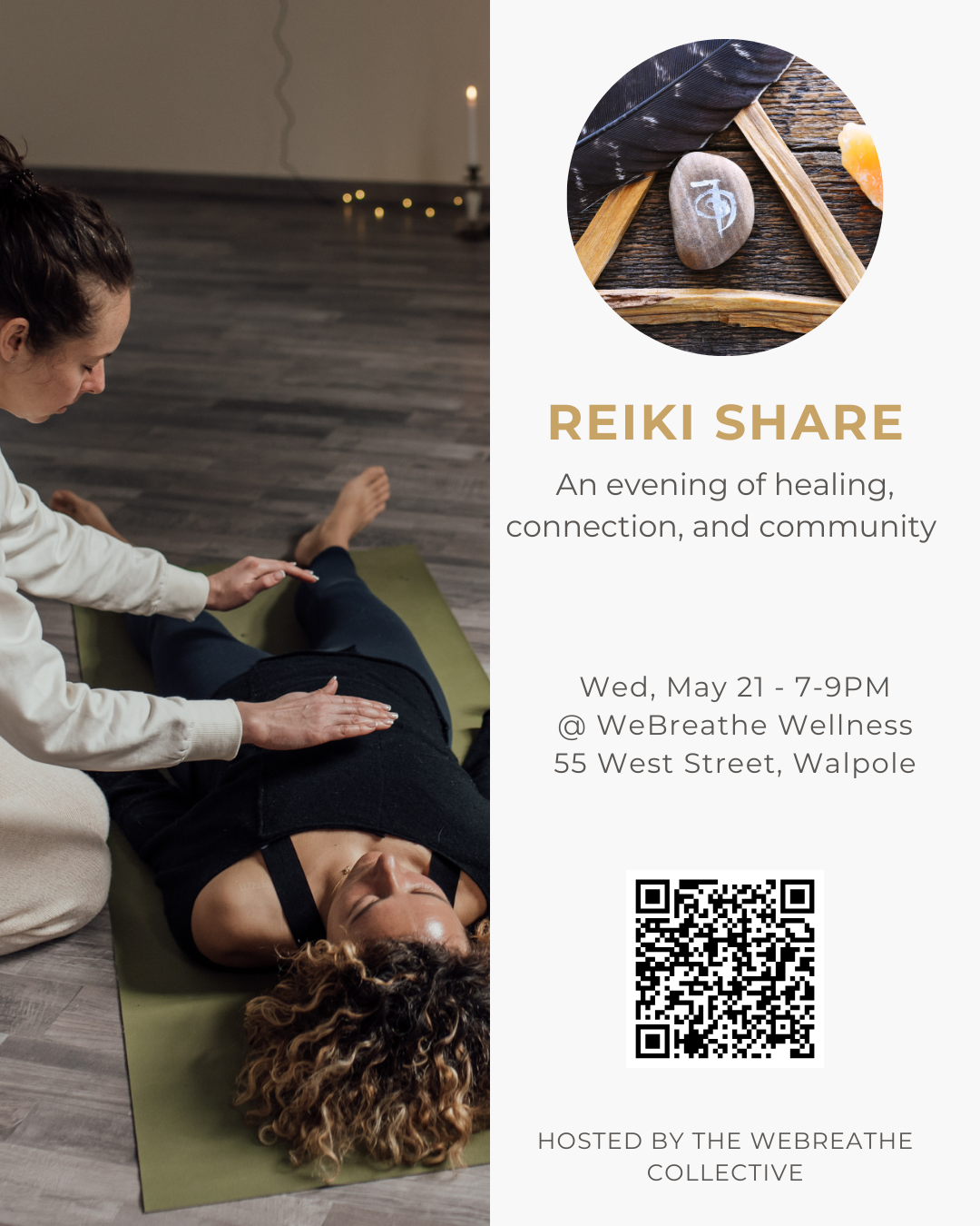Join us for an evening of healing, connection, and community at our Reiki Share, cohosted by the WeBreathe Collective. This special event is designed for Reiki practitioners of all levels to come together in a supportive space to practice, receive, and share the powerful energy of Reiki.