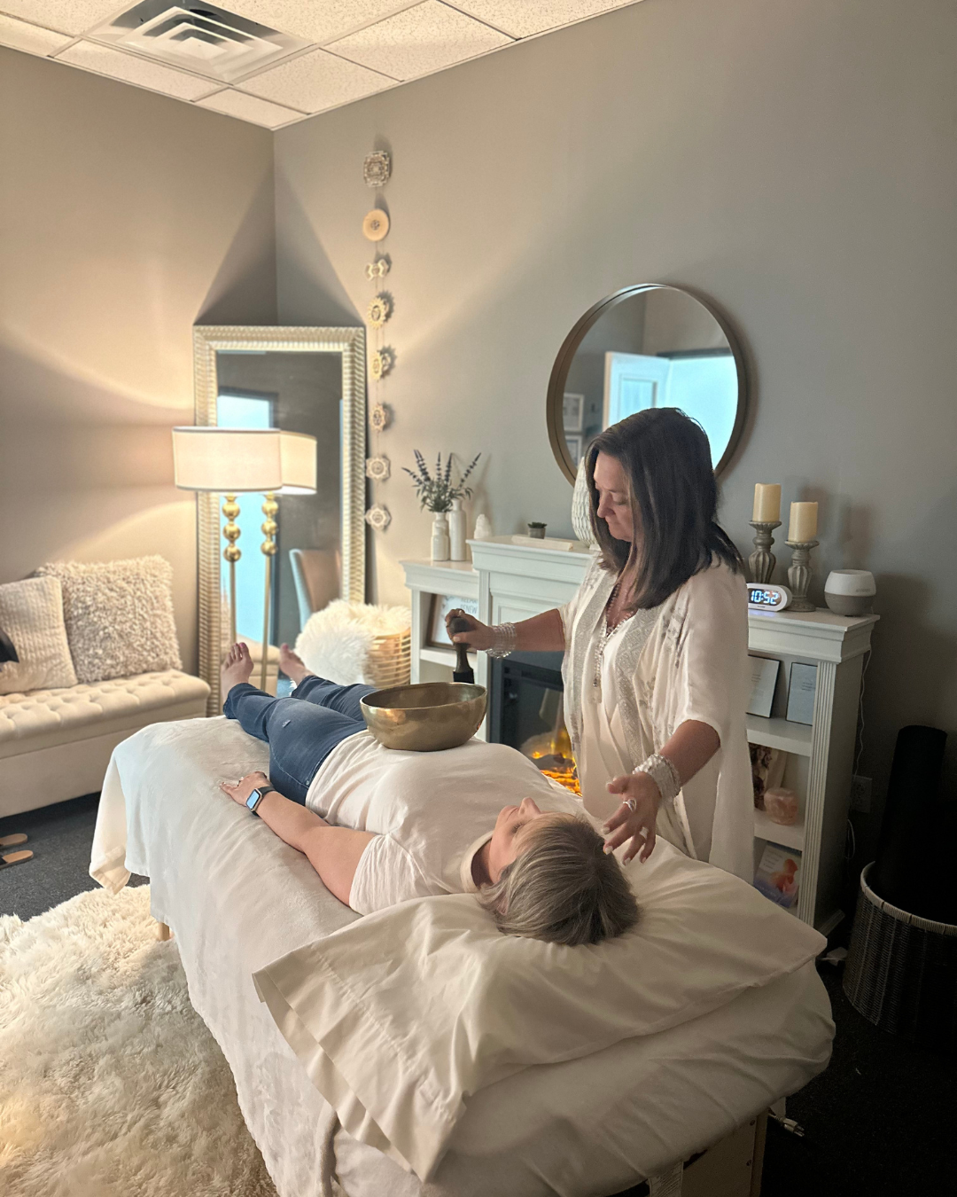 We explore what’s currently going on in your life and where you may be feeling blocked or stuck. I combine a variety of modalities including Reiki, Sound Healing, Chakra Clearing, Crystals, Aromatherapy, and Biofield Tuning to leave you feeling more clear, balanced, and empowered!